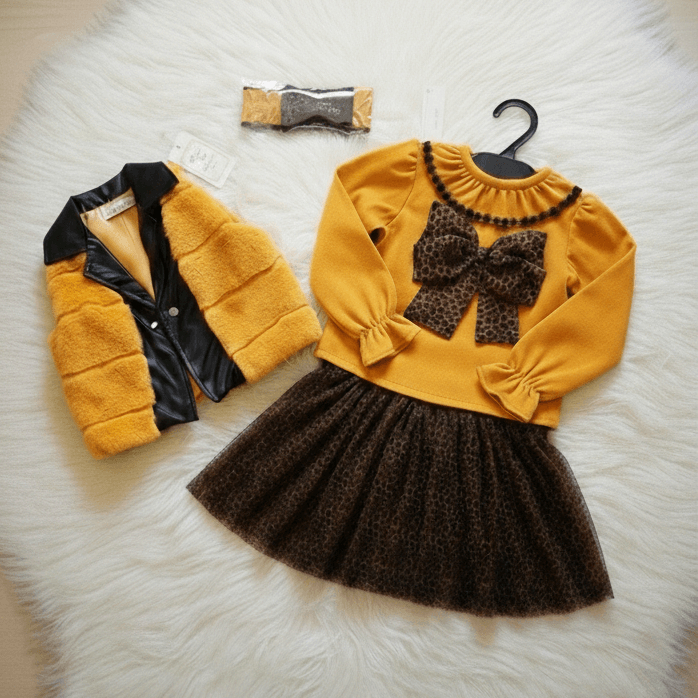 Offrez à votre petite princesse un look irrésistible avec cet ensemble 4 pièces parfaitement coordonné. Alliant douceur et style, cette tenue est idéale pour les sorties en famille ou les occasions spéciales.